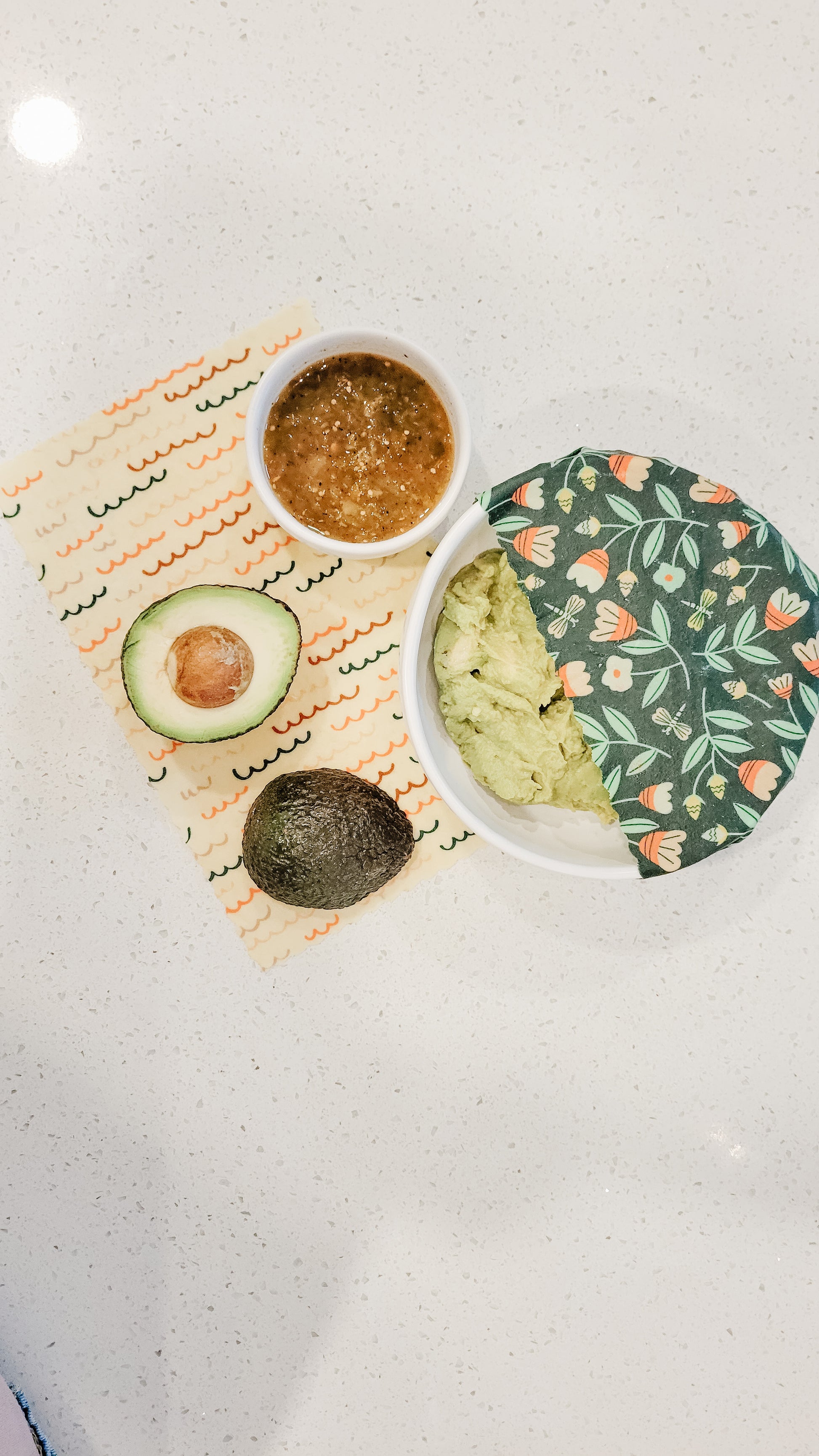 Each beeswax wrap is made from certified 100% organic cotton, organic Canadian beeswax, natural tree rosin, and organic jojoba oil, and is hand made in Canada. Like any item that comes in contact with food, please wash before first use.